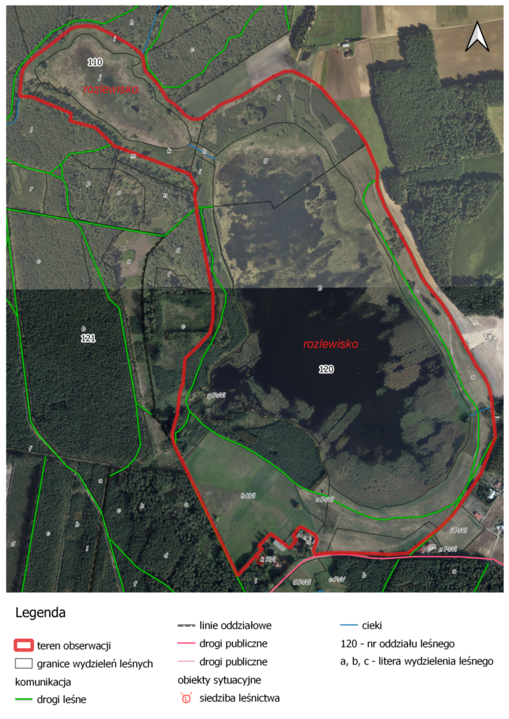 Granica obszaru objętego obserwacjami (oprac. na podst. danych LMN oraz www.geoportal.gov.pl)